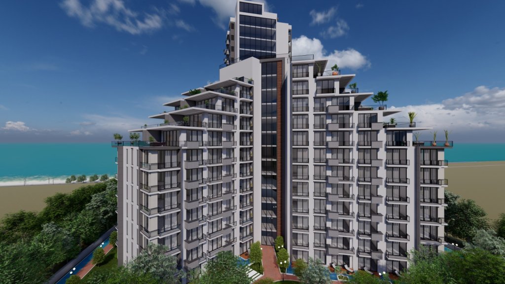 This premium project includes 3 16-storey bright apartment buildings with apartments of various layouts and areas with spacious terraces. All apartments are built with high quality materials and are well planned. The complex has an impressive recreation area with 4 large pools and a beautiful garden, spacious sunny areas with sun loungers, as well as a restaurant and a cozy bar. It offers a breathtaking view of the Mediterranean Sea. The perfect place to enjoy a cocktail or coffee. The complex also has a fitness center and a water sports club.