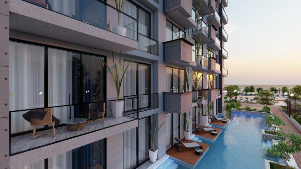MANHATTAN ALIVIP MMT - a new large-scale resort complex, located on the seashore in the Gulf of Morphou in the Gaziveren area of Northern Cyprus. Indeed, it has an ideal location, in a sparsely populated, ecologically impeccable place, which is one of the reasons why many people who want to buy property in Cyprus decided to buy it here. The complex is located right by the beautiful sandy beach, a short walk from the center of Gaziveren. Gaziveren is a picturesque town in the northern part of the island, where many shops, cafes and restaurants are at your service. You can also buy everything you need for daily needs in the nearest town of Lefke.