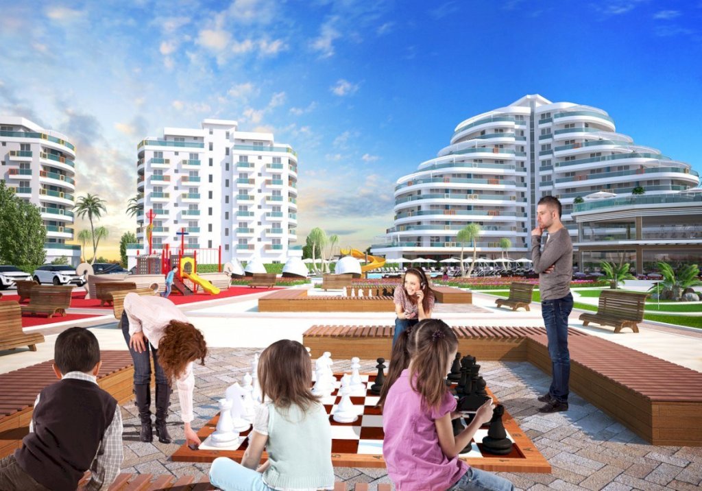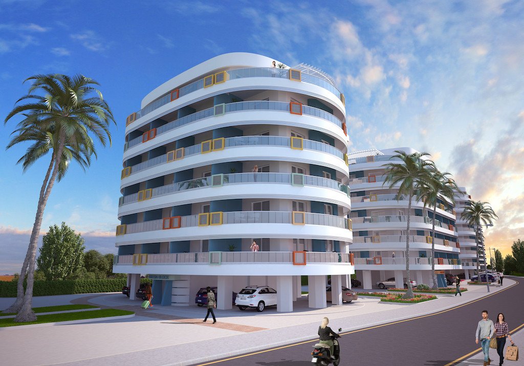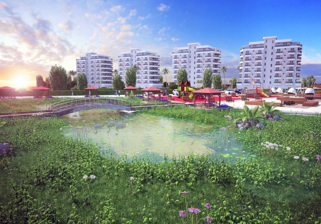 Completion for the first two blocks is set for September 2019, while the other 2 blocks are being completed in September 2021. Extensive payment plans are offered for the period of construction and beyond. The location is conveniently selected with beaches only within 5 minutes walk, the center of Iskele with its shops and market within 1.5 km, and the center of Famagusta with one of the biggest universities only within 12 minutes drive.