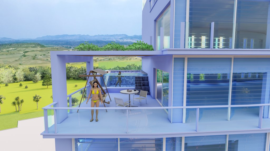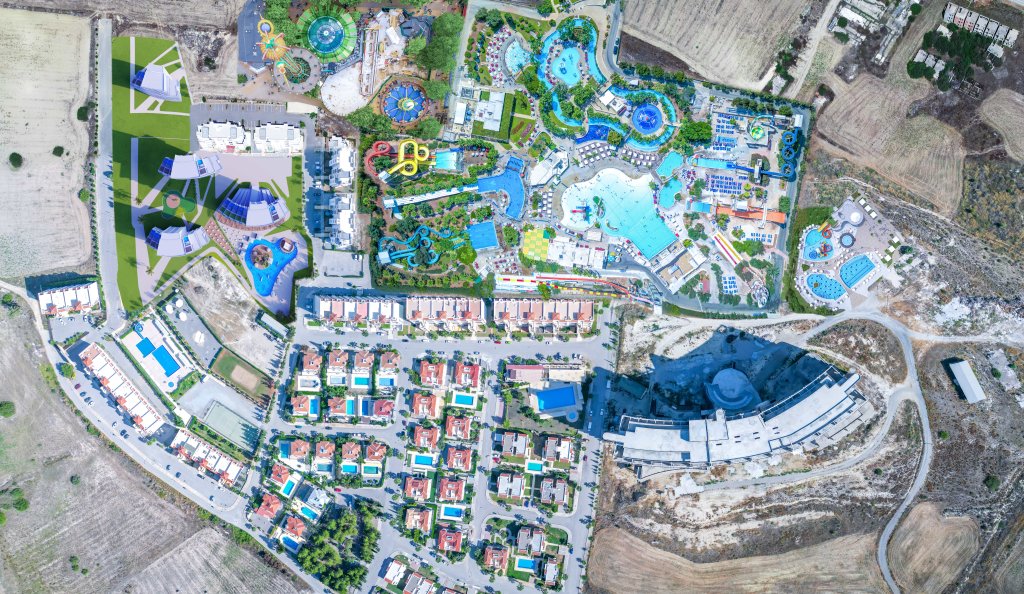 Spanning an impressive 90,000 square meters, Adventure World offers the largest Aqua Park in Cyprus, a Luna Park, Mini Golf, walking and cycling paths, playgrounds, tennis courts, and a host of other facilities. The development includes an artificial lake, indoor leisure and spa facilities, swimming pools, yoga areas, animation, and meticulously landscaped green spaces.