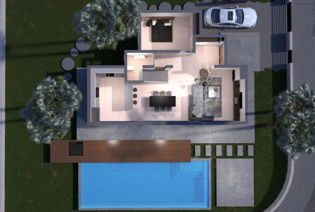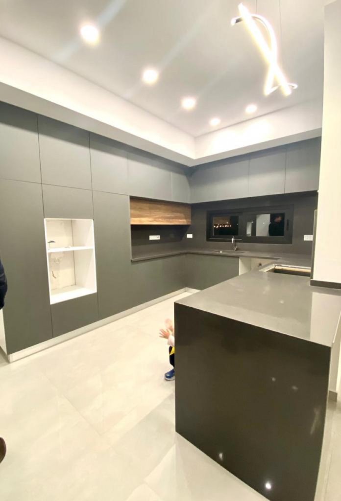 The Living room, dining room and open plan kitchen are located the ground level, and present a large open plan area with aspect to the swimming pool. The ceiling height of 3.20 meters high provides a spacious and luxury environment to the owners and visitors.