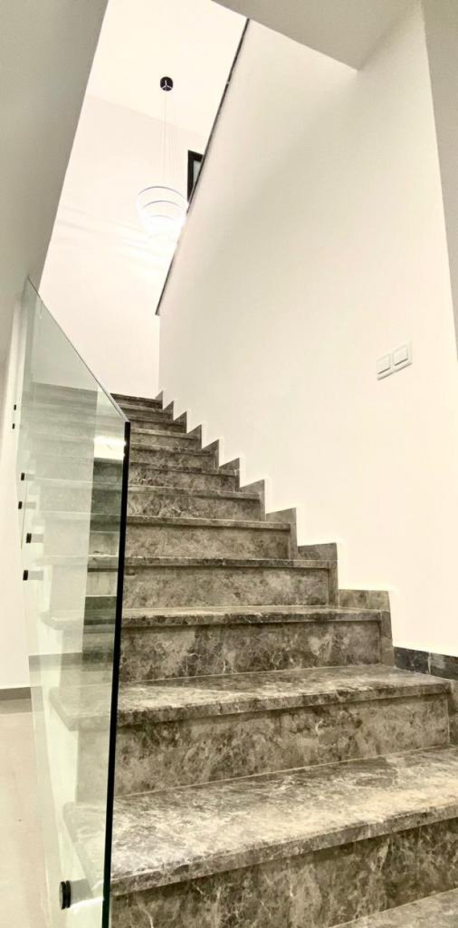 On the upper floor there are the other 3 en-suite bedrooms and a laundry/utility room. The largest bedroom is designed as the parents' room with walk-in closet and includes toilet-bathroom. The bathroom is designed as His & Hers.