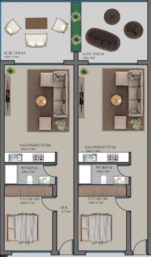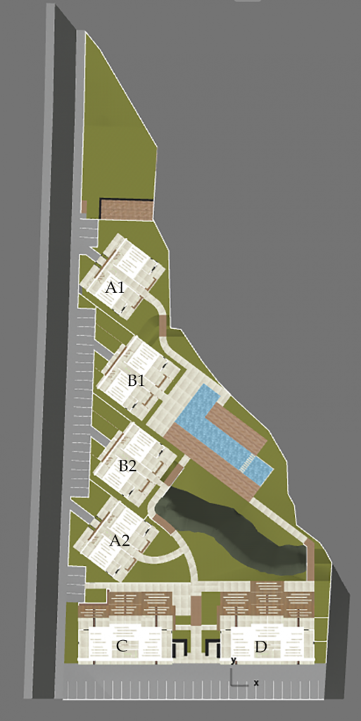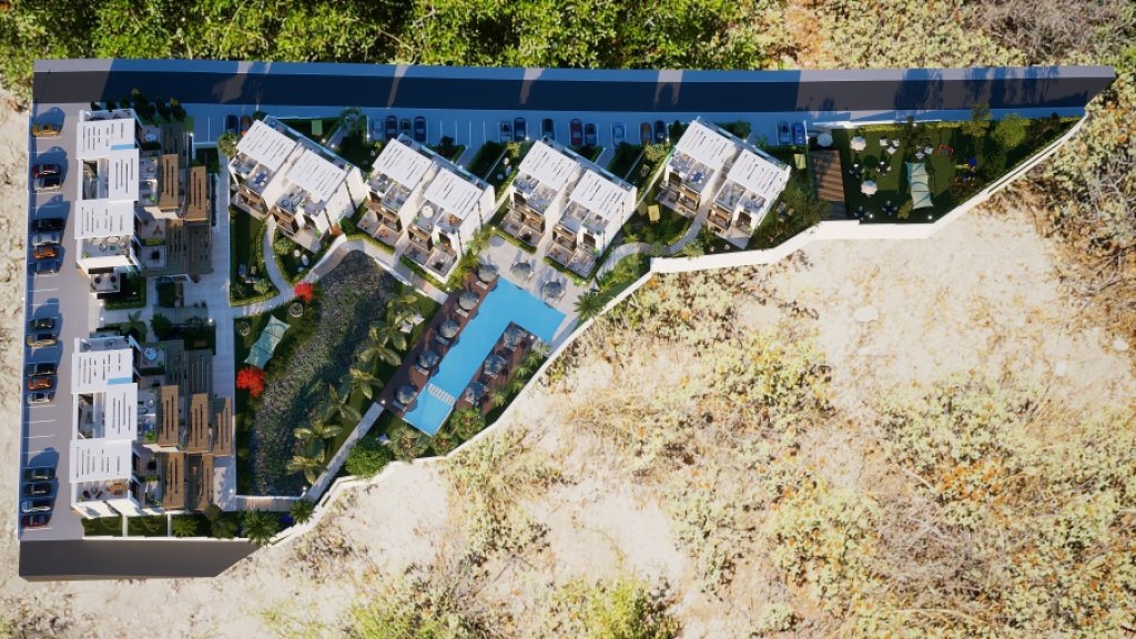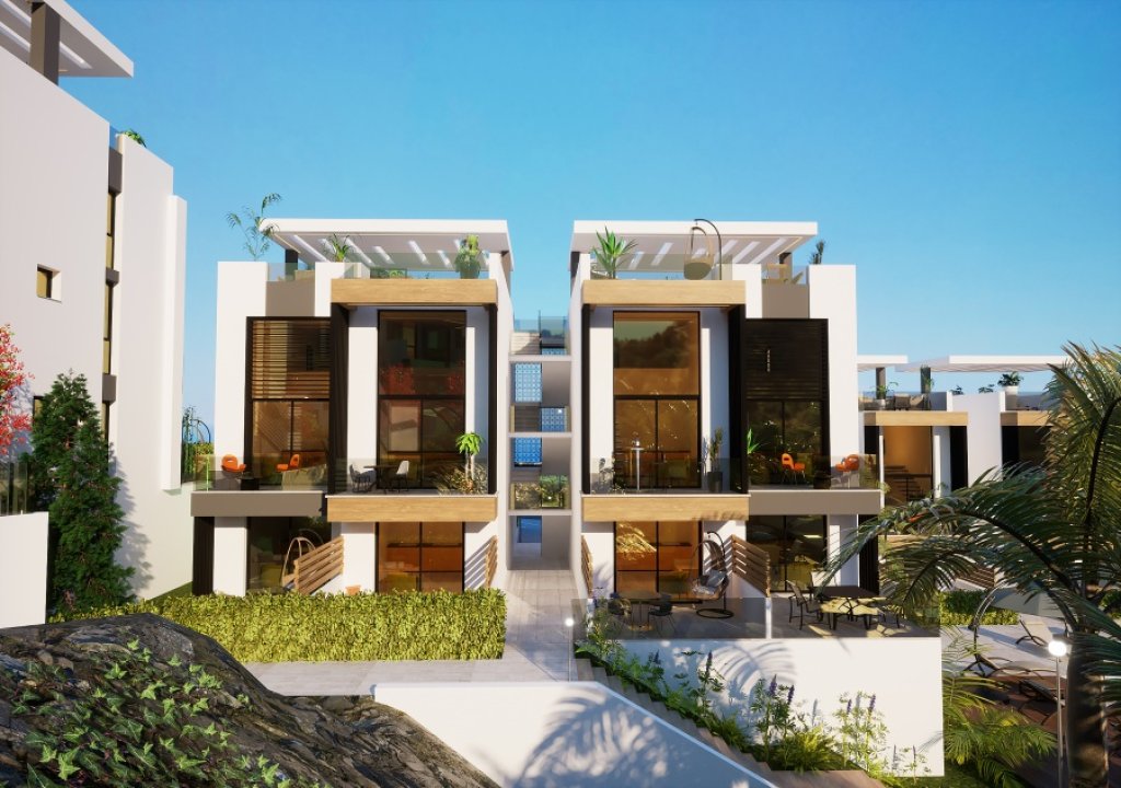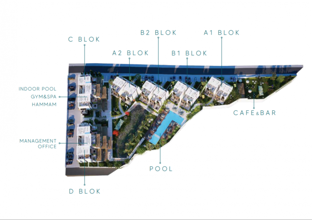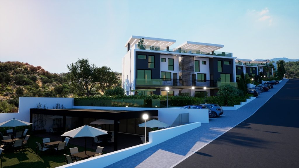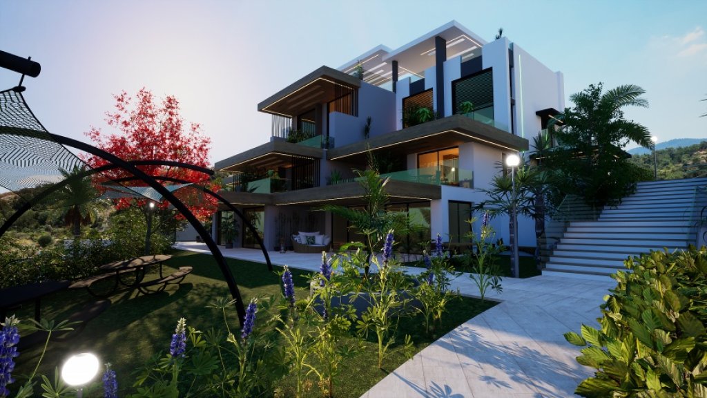 The development offers 54 garden apartments and penthouses, ladnscaped green areas and gardens, Outdoor and Indoor Swimming Communal Pools, Spa & Turkish Bath & Sauna, Gym, Cafe-Bar and car parking spaces for all the residents.