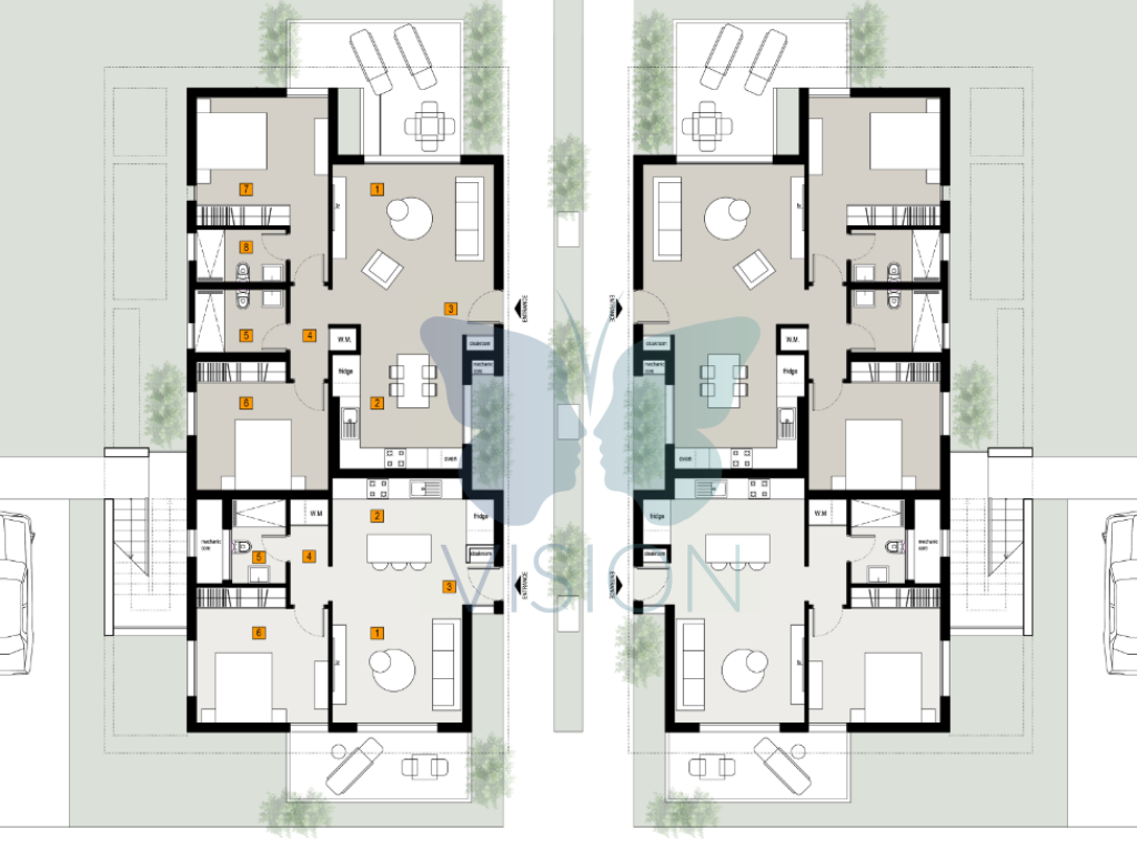 Type 2 Building: Hosting four luxurious apartments, this building includes two ground floor units and two penthouse apartments on the first floor. Access to the apartments is through a common area, fostering a sense of community while maintaining the hallmark of luxury.