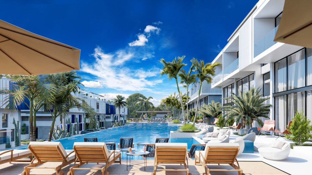 In addition to the supermarket, development will have: an infinity pool with a bar, a spa with massage rooms, a sauna, a gym and an indoor pool, as well as an outdoor workout area, tennis and basketball courts.