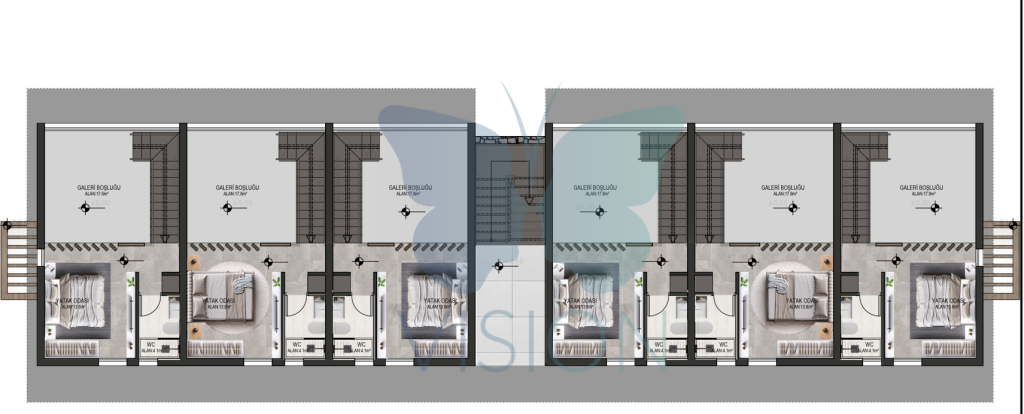- 1+1 penthouse with 48m2 covered area, 6m2 balcony and 34-36m2 roof terrace