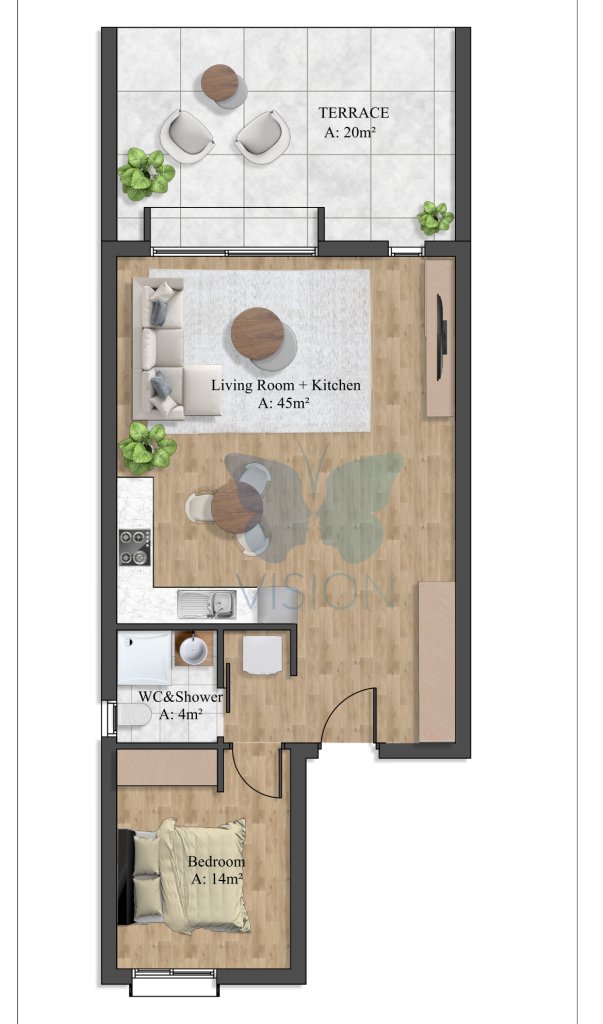 The development consists of 12 twin villas (townhouses),8 2+1 Loft apartments and 8 1+1 apartments in total, sharing a communal swimming pool, and 1 detached villas with separate pool for more privacy.