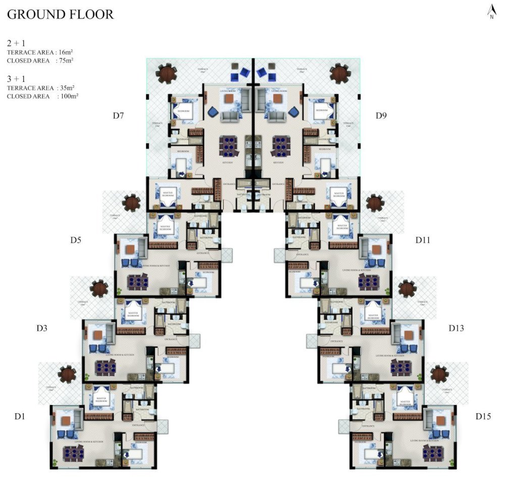 The project benefits from an already established communal area with a lot of amenities such as indoor and outdoor swimming pools, sunbathing terraces, a cafe/bar, sauna, gym, and a spa.
