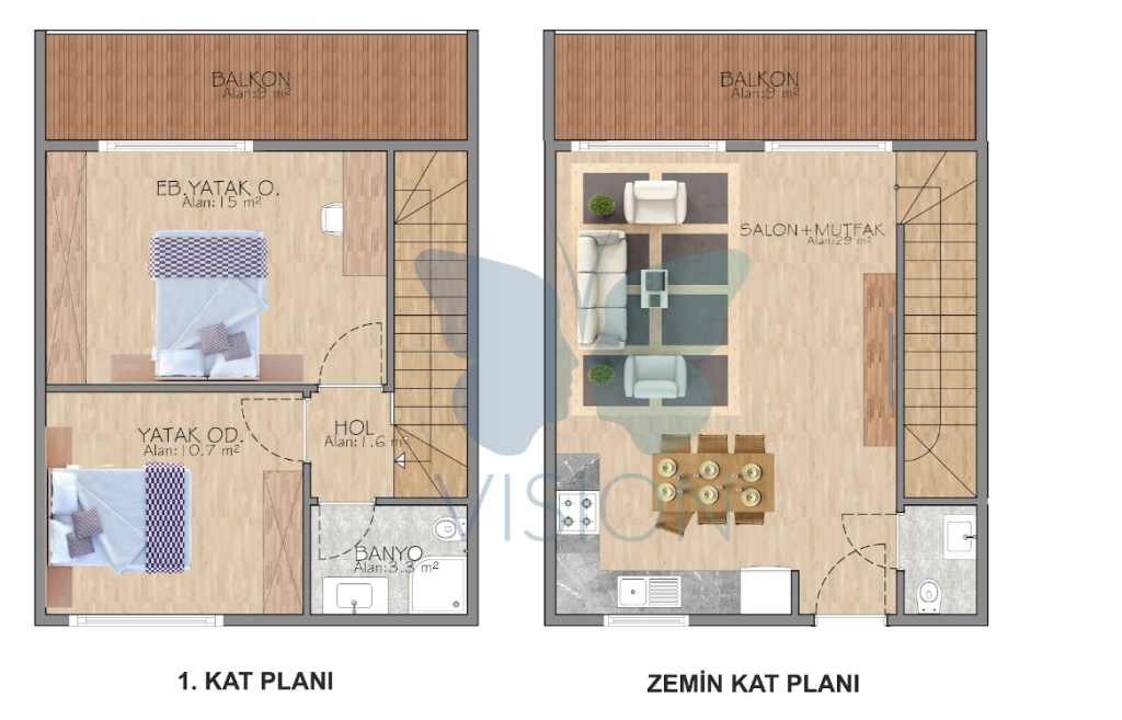 The project will consist of 29 apartment units which will be built around a communal swimming pool with landscaped design. The apartments are 1-bedroom or 2-bedroom depending on your choice and all come with a roof terrace. Luxury townhouses overlooking the Mediterranean Sea in Lapta, North Cyprus.