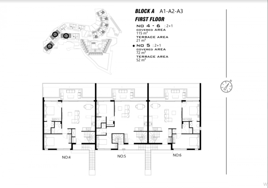 The project offers a wide range of studio apartments, apartments with 1, 2 and 3 bedrooms, as well as penthouses and only 5 sea front bungalows with 3 bedrooms and private gardens and swimming pools.