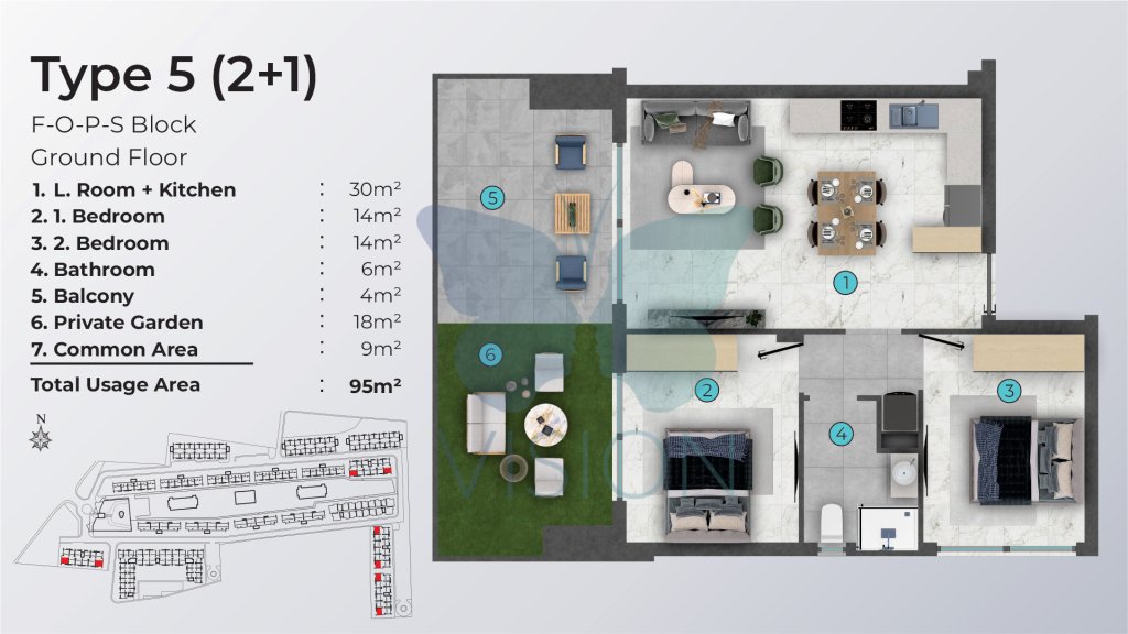 Our complex comprises 408 residential units, offering a diverse range of living options, from cozy studios to spacious 3+1 apartments and private villas. Ground floor units come with generous private garden spaces, while those on the first floor offer rooftop terraces with breathtaking sea and mountain views. With sleek, stylish designs, all properties ensure comfortable and elegant living.