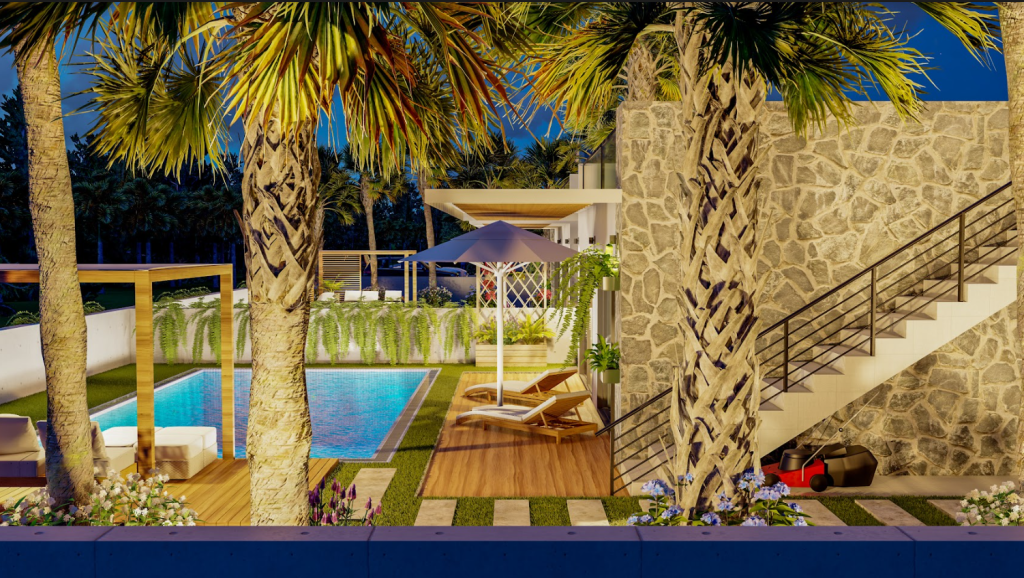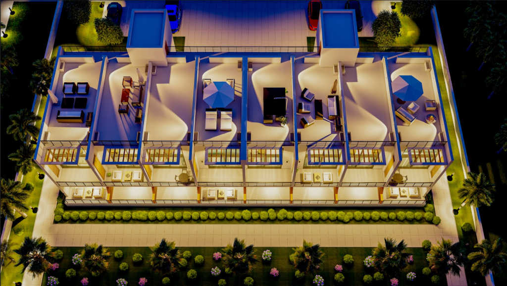 • 2-3 bedroom villas (93m2+28m2 terrace + 33m2 private swimming pool + 93m2 rooftop terrace)