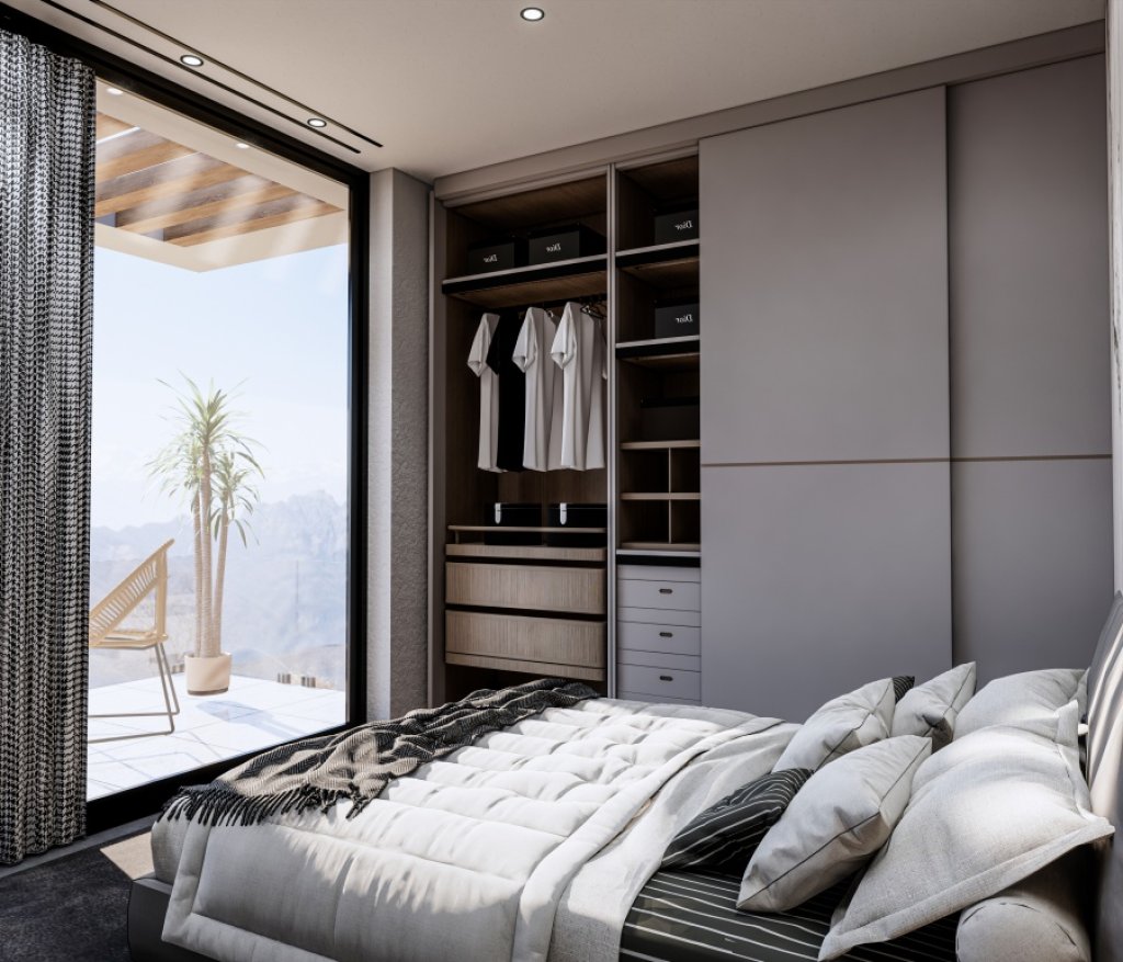 The villas offer 3 or 4 bedrooms and are a superb choice for those who are looking for luxury lifestyle in a peaceful area enjoying wonderful panoramic views and great indoor and outdoor space, large panoramic windows and very high building standards. Private swimming pool and terrace is directed to the sunset which is an additional benefit.