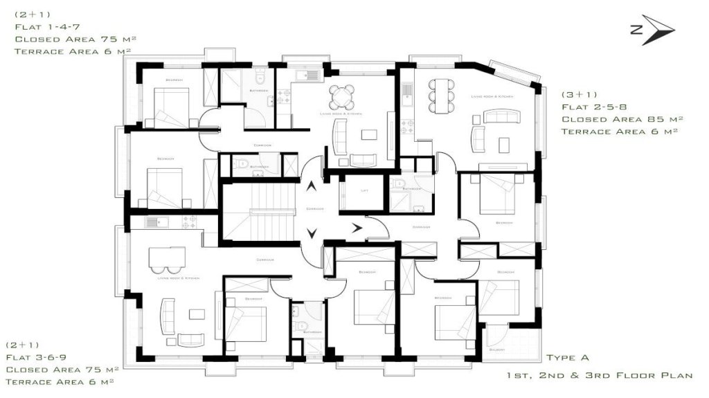 The 2 blocks - A and B - comprise of 19 apartments in each block, the total of 38 apartments with 1 bedroom penthouse and 2 bedrooms and, enjoying an elevated position with stunning views across the town, combines innovative architecture with the highest quality materials.