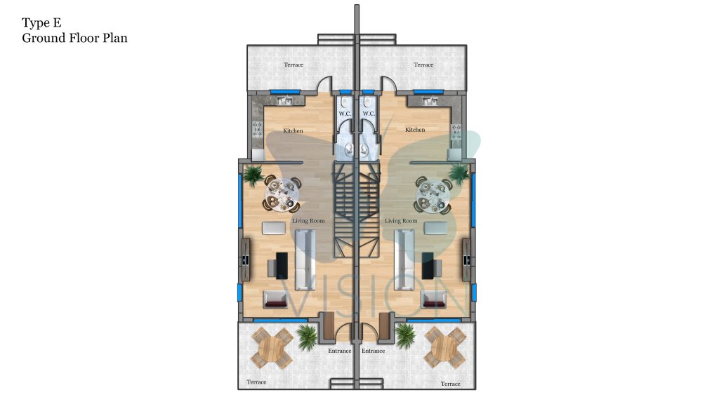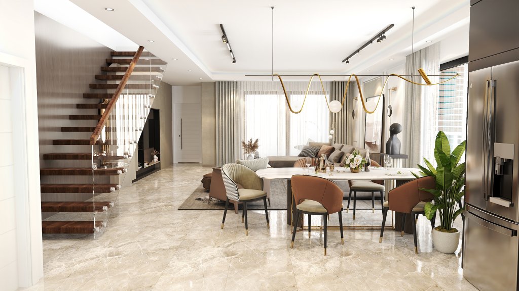 Riva Park Complex comprises 50 residential units and 13 commercial properties, including 1+1 apartments (66 m2), 2+1 apartments (80 to 100 m2), 3+1 apartments (160 m2), 3+1 detached villas (240 m2), and 3+1 semi-detached villas (188 m2). Each unit is designed with the highest standards in mind, featuring a variety of quality floor and bathroom ceramic tiles, laminate, and WC and bathroom faience and accessories. The bathroom faience and WC are of Hilton standard, ensuring a luxurious feel. The kitchens are fitted with luxury appliances, and each bedroom comes with a fitted wardrobe and entrance cabinet. The units also feature PVC double glazed windows, aluminum railing, hydrophore system, and boiler for every apartment.