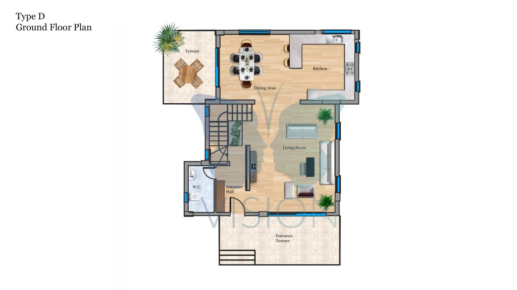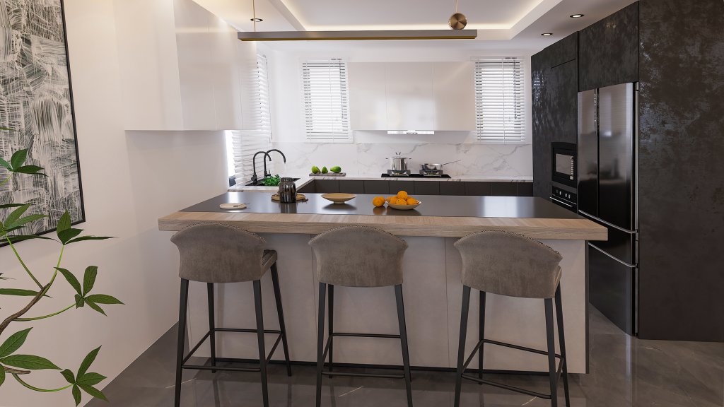 Riva Park Complex comprises 50 residential units and 13 commercial properties, including 1+1 apartments (66 m2), 2+1 apartments (80 to 100 m2), 3+1 apartments (160 m2), 3+1 detached villas (240 m2), and 3+1 semi-detached villas (188 m2). Each unit is designed with the highest standards in mind, featuring a variety of quality floor and bathroom ceramic tiles, laminate, and WC and bathroom faience and accessories. The bathroom faience and WC are of Hilton standard, ensuring a luxurious feel. The kitchens are fitted with luxury appliances, and each bedroom comes with a fitted wardrobe and entrance cabinet. The units also feature PVC double glazed windows, aluminum railing, hydrophore system, and boiler for every apartment.