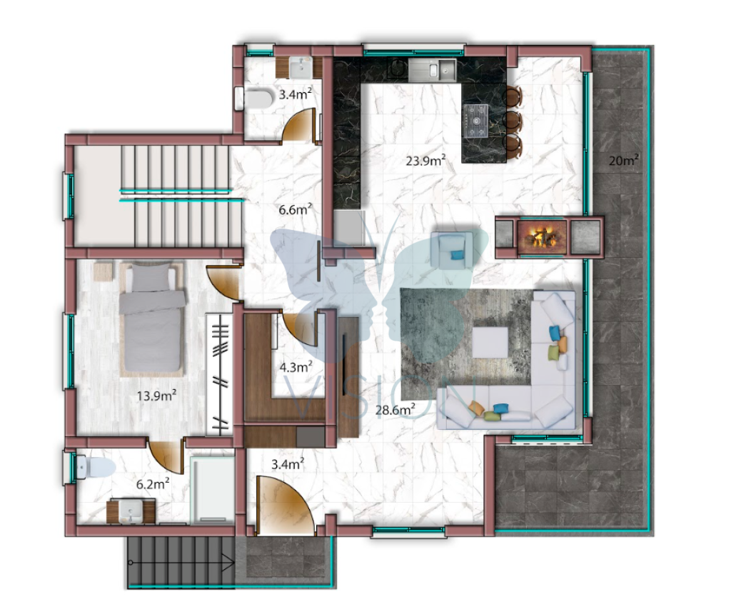 − FLOORS with GRANITE CERAMIC / CERAMIC and PARQUET OPTIONS