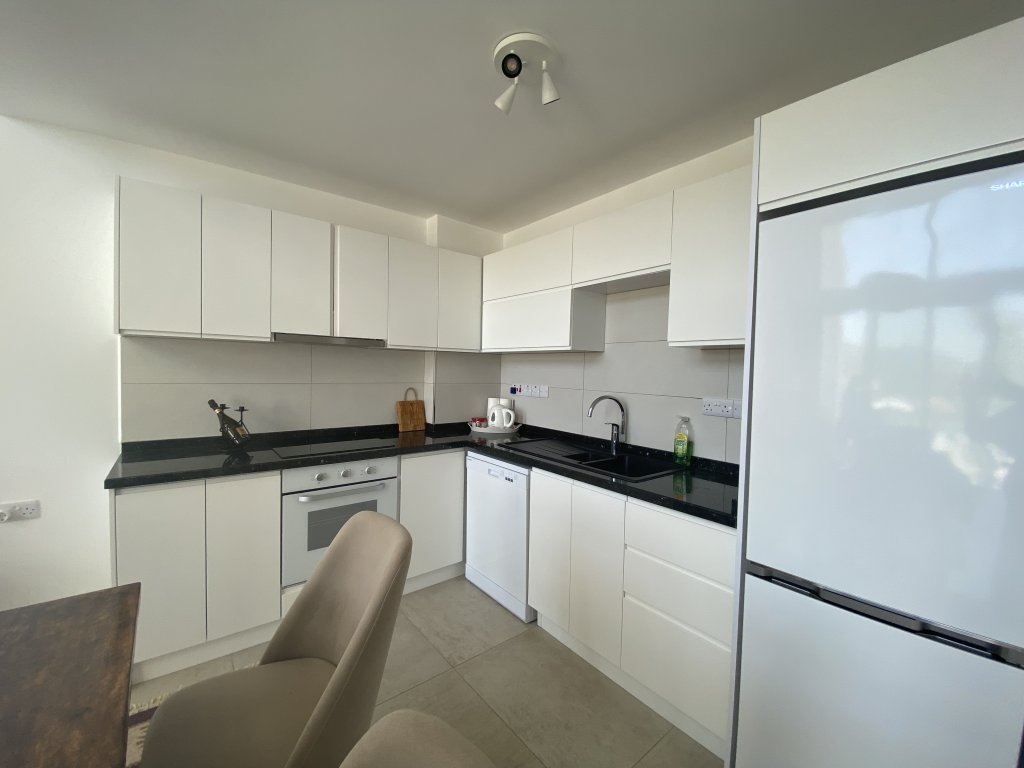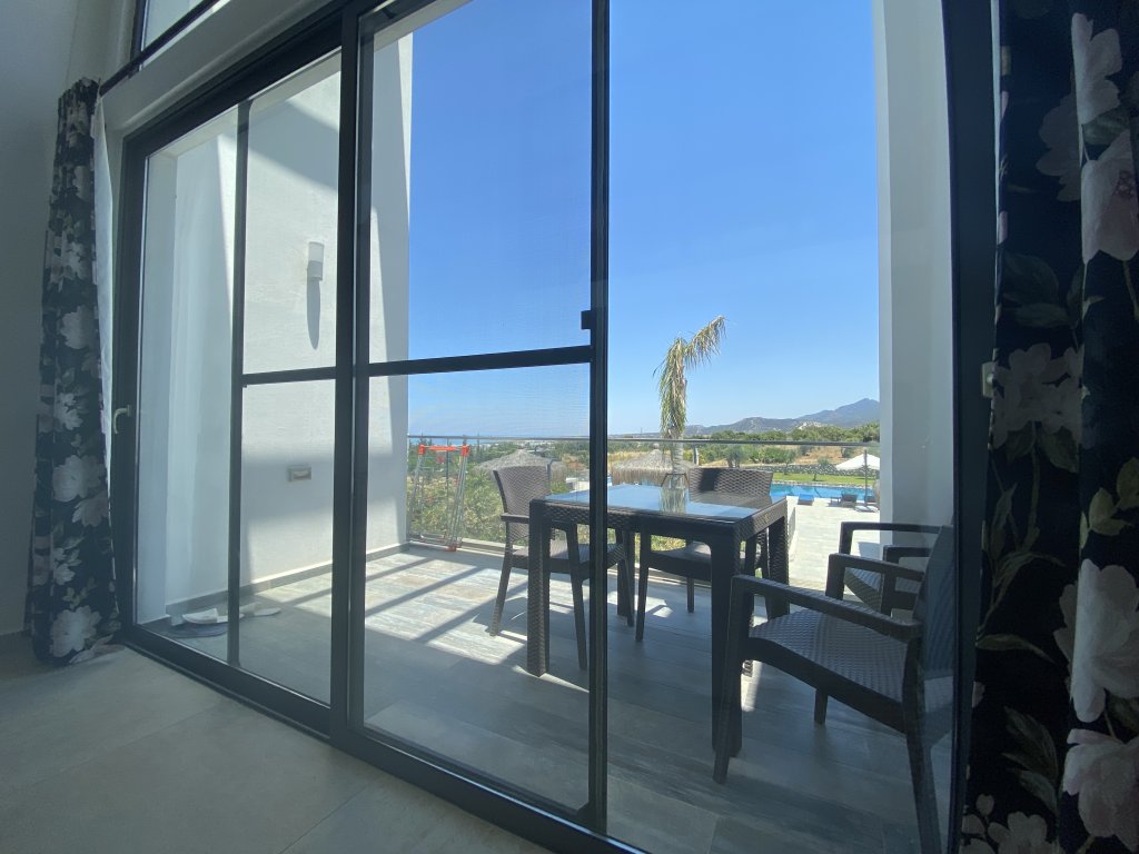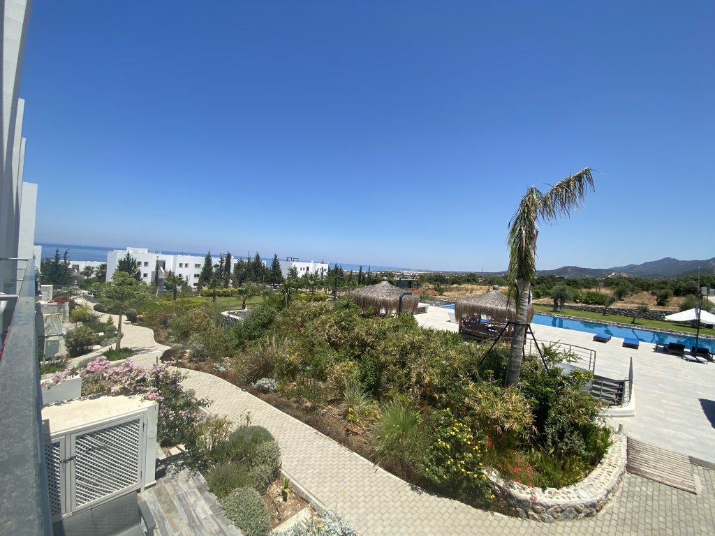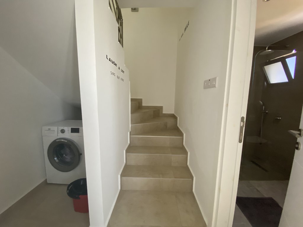 Property feautures 85 sqm of interior and 8,5 sqm of terrace. The apartment has a view to the oasis communal pool, nicely landscaped green areas and the Mediterranean. Upon entrance to the property, one has an amazing feel of space due to the double height ceiling in the lounge / kitchen area with access to a private terrace with a view. One of the bathrooms is located on the same level, along with washing machine area.