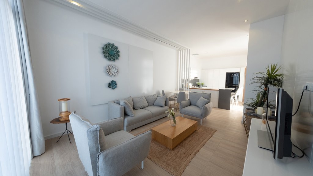 With an interior space of 100 sqm, a generous terrace of 35 sqm, and a stunning 50 sqm roof terrace accessible via a private entrance from the balcony, this penthouse seamlessly blends indoor and outdoor living. The roof terrace, fully tiled and equipped with outdoor kitchen cabinets and jacuzzi, offers a captivating space for entertaining while enjoying panoramic views. The apartment comes complete with a VRF air conditioning system, premium kitchen white goods, and elegant decoration panels—all seamlessly integrated into the overall design.