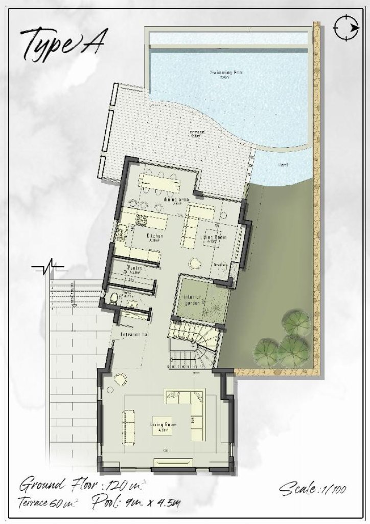 The villas are to be completed with high standard specifications and will have a nice open plan kitchen and lounge, additional living room, 3 or 4 double bedrooms with en-suite bathroom to the master bedroom. There is a nice garden plot and a private swimming pool for each villa.