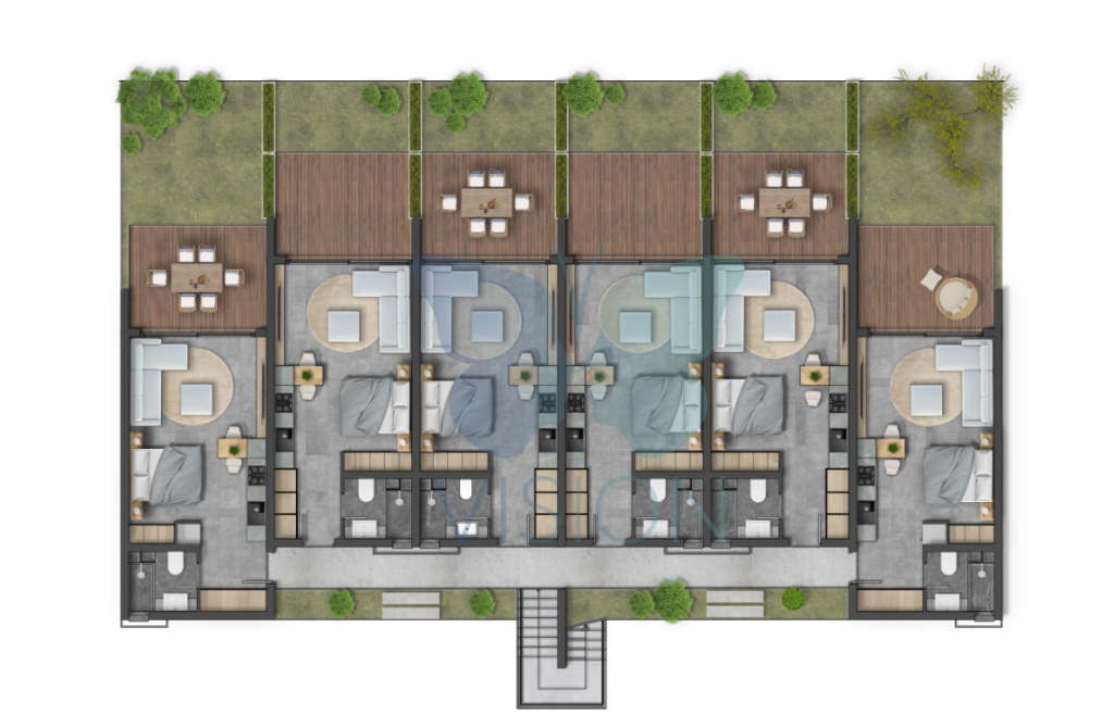 The complex is equipped with a host of facilities to ensure a high-quality lifestyle for its residents. These include a gym and wellness center, sauna, communal swimming pools, and 24/7 maintenance and rental offices. The tropical and Mediterranean landscape design further enhances the overall ambiance of the complex.