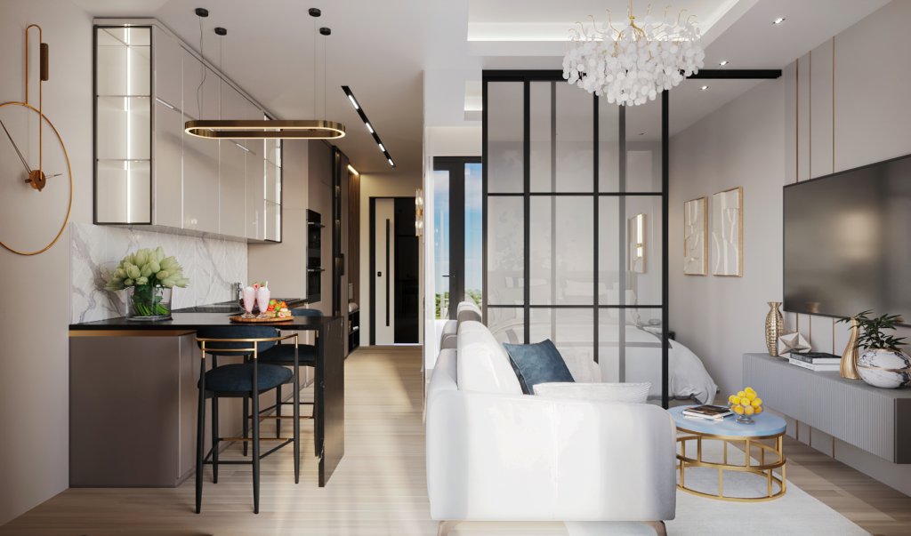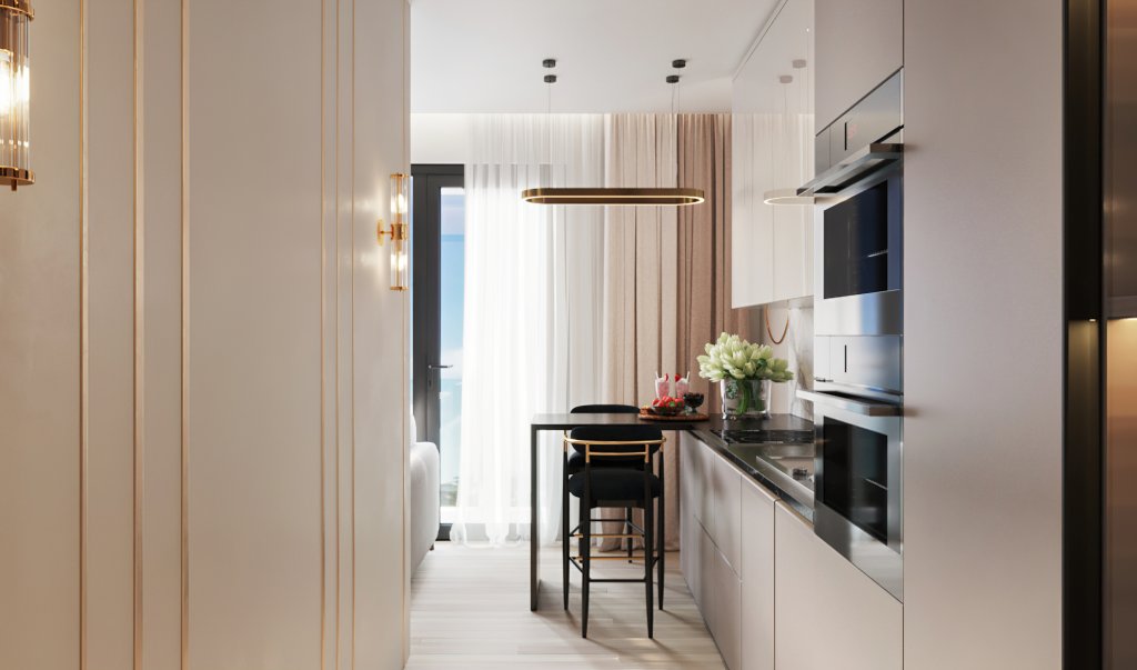This premium project includes 3 16-storey bright apartment buildings with apartments of various layouts and areas with spacious terraces. All apartments are built with high quality materials and are well planned. The complex has an impressive recreation area with 4 large pools and a beautiful garden, spacious sunny areas with sun loungers, as well as a restaurant and a cozy bar. It offers a breathtaking view of the Mediterranean Sea. The perfect place to enjoy a cocktail or coffee. The complex also has a fitness center and a water sports club.