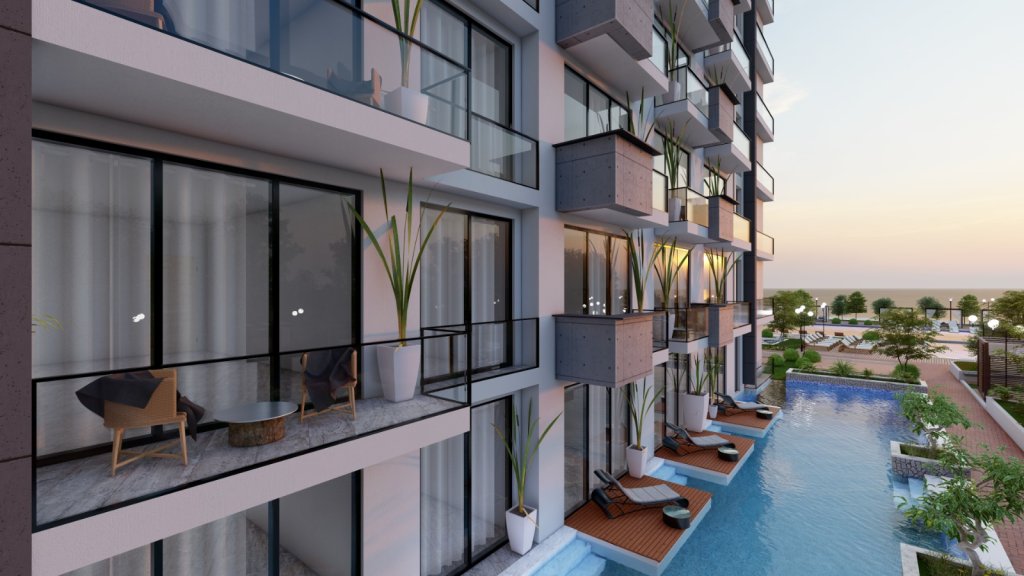 MANHATTAN ALIVIP MMT - a new large-scale resort complex, located on the seashore in the Gulf of Morphou in the Gaziveren area of Northern Cyprus. Indeed, it has an ideal location, in a sparsely populated, ecologically impeccable place, which is one of the reasons why many people who want to buy property in Cyprus decided to buy it here. The complex is located right by the beautiful sandy beach, a short walk from the center of Gaziveren. Gaziveren is a picturesque town in the northern part of the island, where many shops, cafes and restaurants are at your service. You can also buy everything you need for daily needs in the nearest town of Lefke.