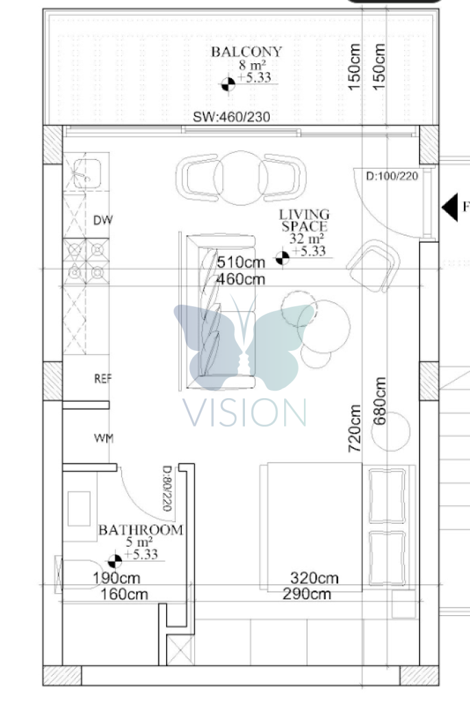 • Studio garden apartment (37sqm + 8 sqm terrace)